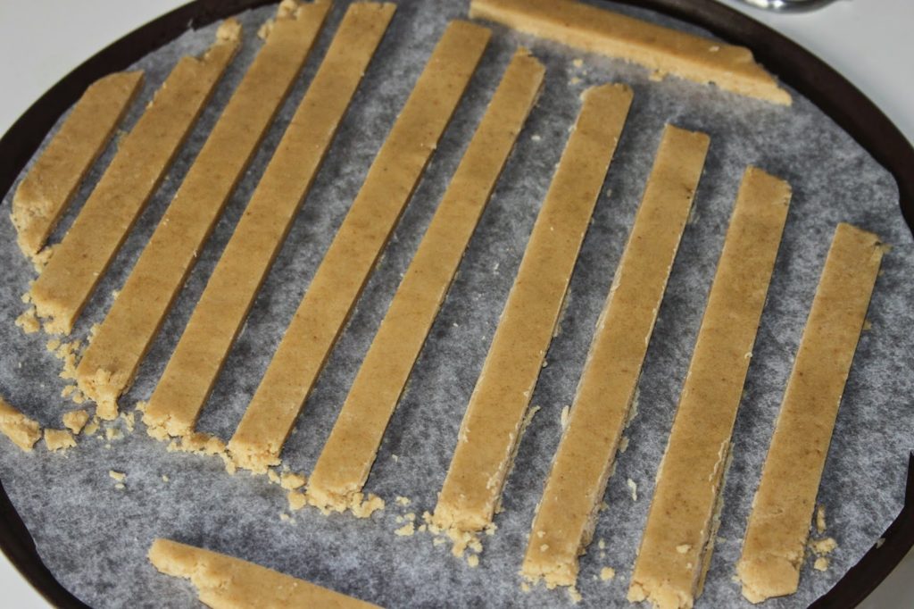 Mettez la pâte étalée au frais pendant 45 minutes, le temps qu’elle se fige un peu. Coupez-la ensuite en bande de 15mm de large.