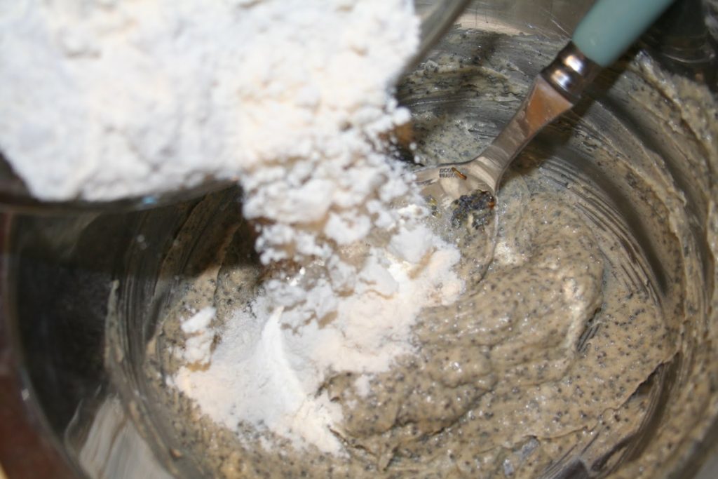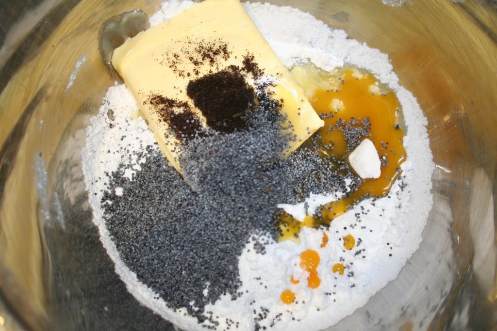 - Commencer par mettre les graines de pavot, la vanille en poudre et liquide, le jaune d’oeuf, le beurre pommade et le sucre glace dans un bol.
