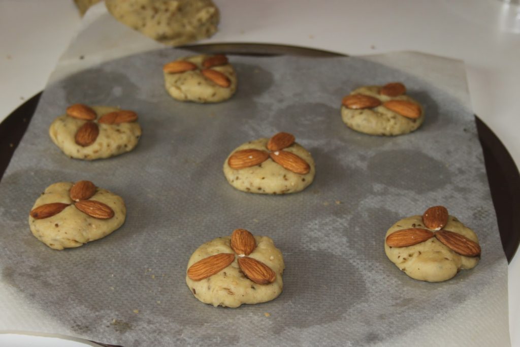 Cette année par chance, vous le savez, je suis allé en Andalousie et j’ai pu visiter Arcos de la Frontera qui possède une délicieuse recette de sablés sucrés à l’huile d’olive et à l’anis (voir recette ICI). Il ne m’en a pas fallu plus pour avoir envie de vous adapter cette spécialité en version salée, qui accompagnera à merveille ma Soupe Froide Alvalle. Cela donne des petits pains croustillants au cumin, à l’anis, au sésame et à l’huile d’olive, surmontés d’amandes grillées! C’est véritablement addictif…pour l’apéritif!