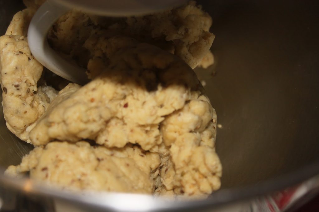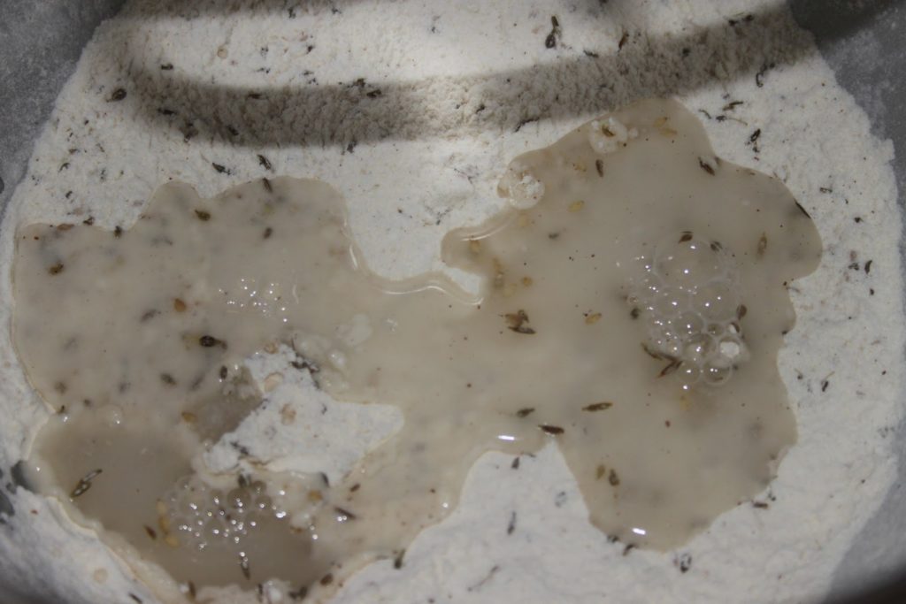 - Mélanger le tout puis ajouter de l’eau tiède progessivement pour former une pâte à pain.