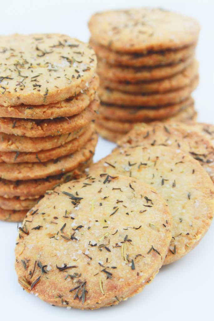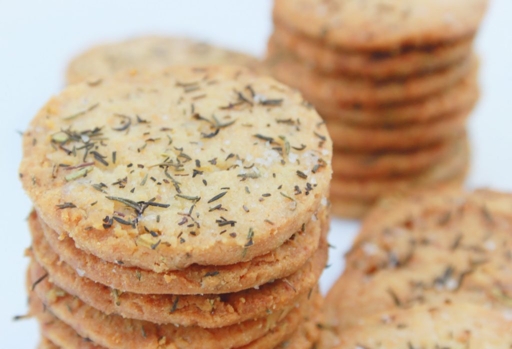 Je vous propose cette fois une recette de petits sablés salés au thym et au romarin. Ils sont idéaux pour accompagner les apéritifs, avec un verre de vin ou de champagne! Ces petits sablés sont friables à souhait et riches en huile d’olive. Une recette simple et sans prétention, rapide à préparer et délicieuse à déguster! Le secret de leur réussite? Leur finesse. Ils seront en effet bien meilleurs si ils sont fins et croustillants. J’utilise pour cela technique au pistolet que nous avons vu dans les « sablés au blé noir de Portsall ».