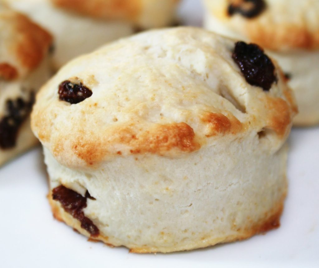 Les scones sont des petits gâteaux britanniques (entre le pain et le cake) d’Ecosse qui se consomment avec de la confiture et de la crème épaisse (clotted cream). Délicieux à l’heure du thé! Les scones originaux sont sans raisins, mais il est très courant d’en trouver avec. On peut donc au besoin les éliminer de la recette!