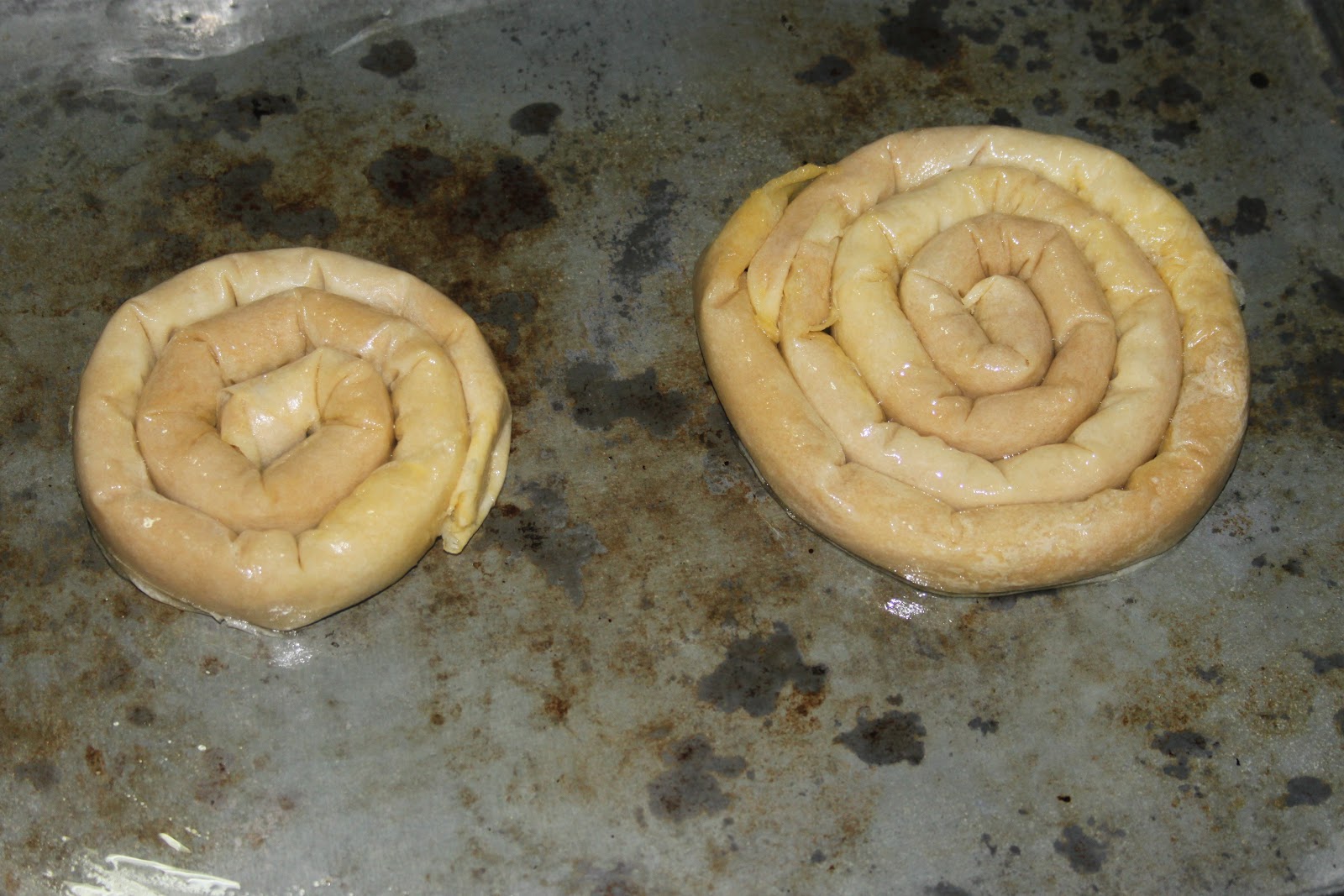 Cuire à 180°C pendant une vingtaine de minutes ou jusqu’à ce que les serpentins soient bien dorés. Il faut surveiller!