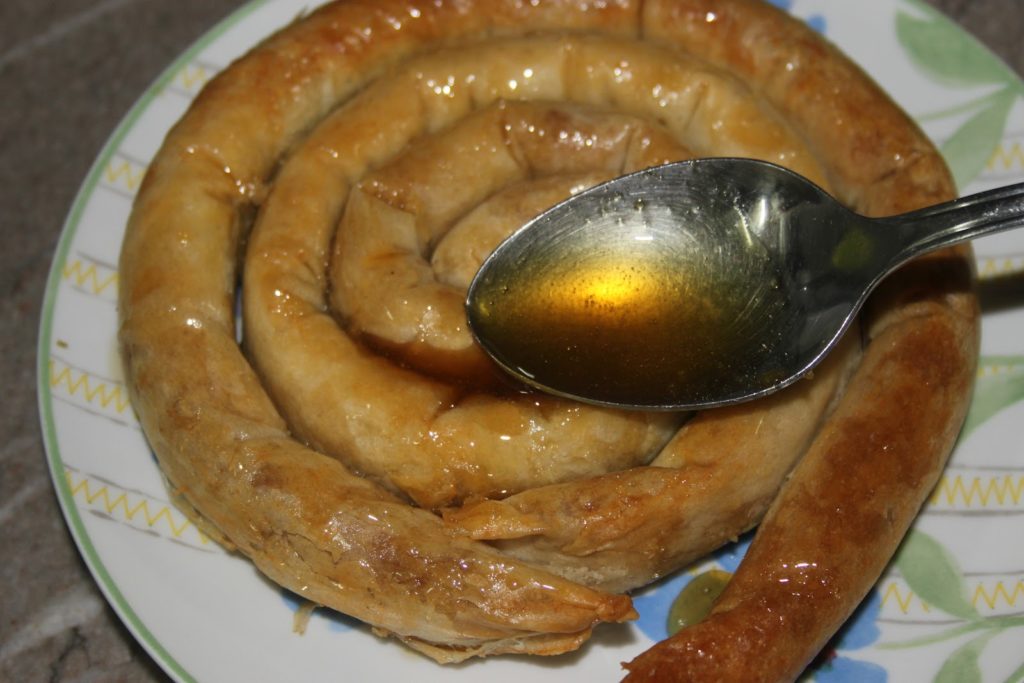 - On peut soit faire plusieurs serpentins ou alors agrandir le premier en continuant avec la farce et les feuilles de brick. Il suffira alors de joindre les deux grands boudins en enfonçant un peu le premier boudin dans le second, puis de continuer le serpentin. Cuire à 180°C pendant une vingtaine de minutes ou jusqu’à ce que les serpentins soient bien dorés. Il faut surveiller!