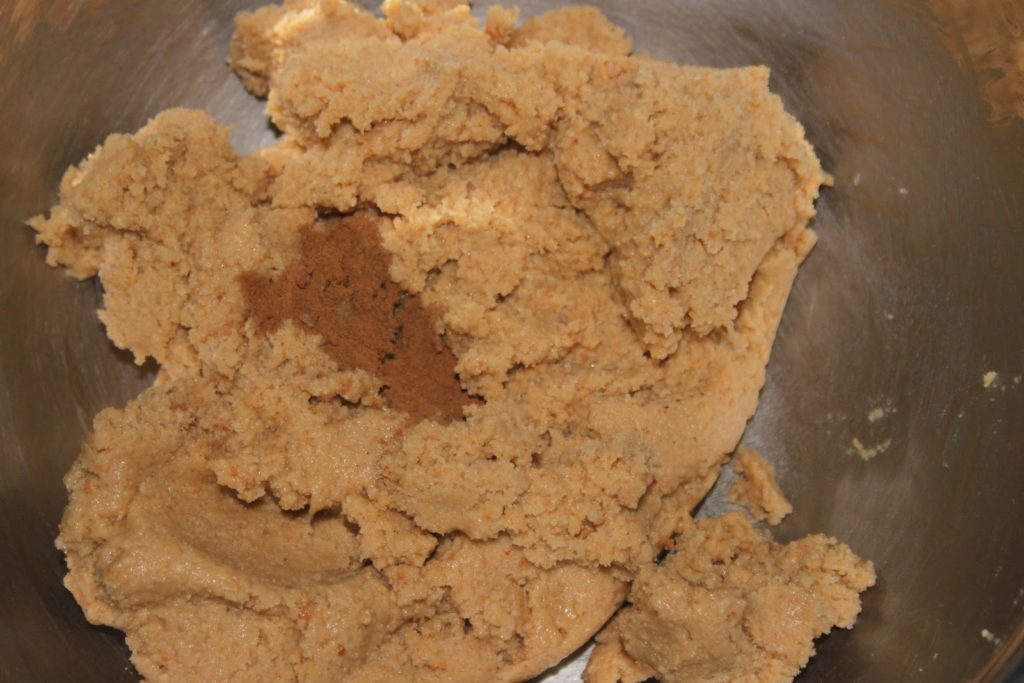 Puis mixer de nouveau juste pour obtenir une pâte. On peut aussi (ce que l’on a fait ce jour là) passer la farce dans un hachoir à viande. Ajouter la cannelle et le beurre fondu.