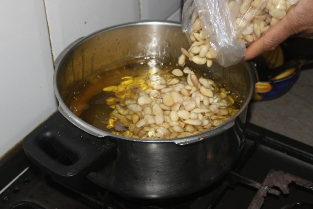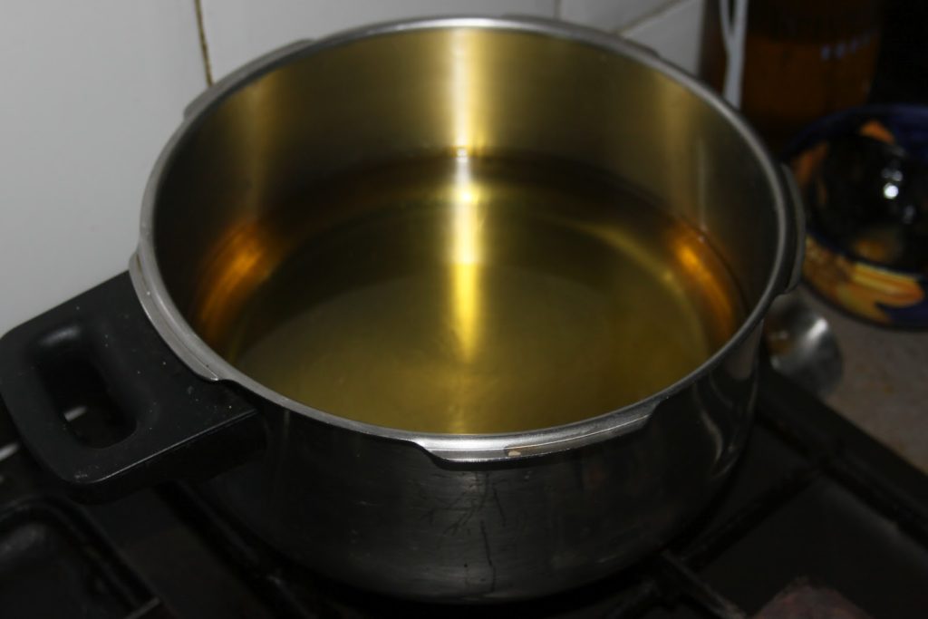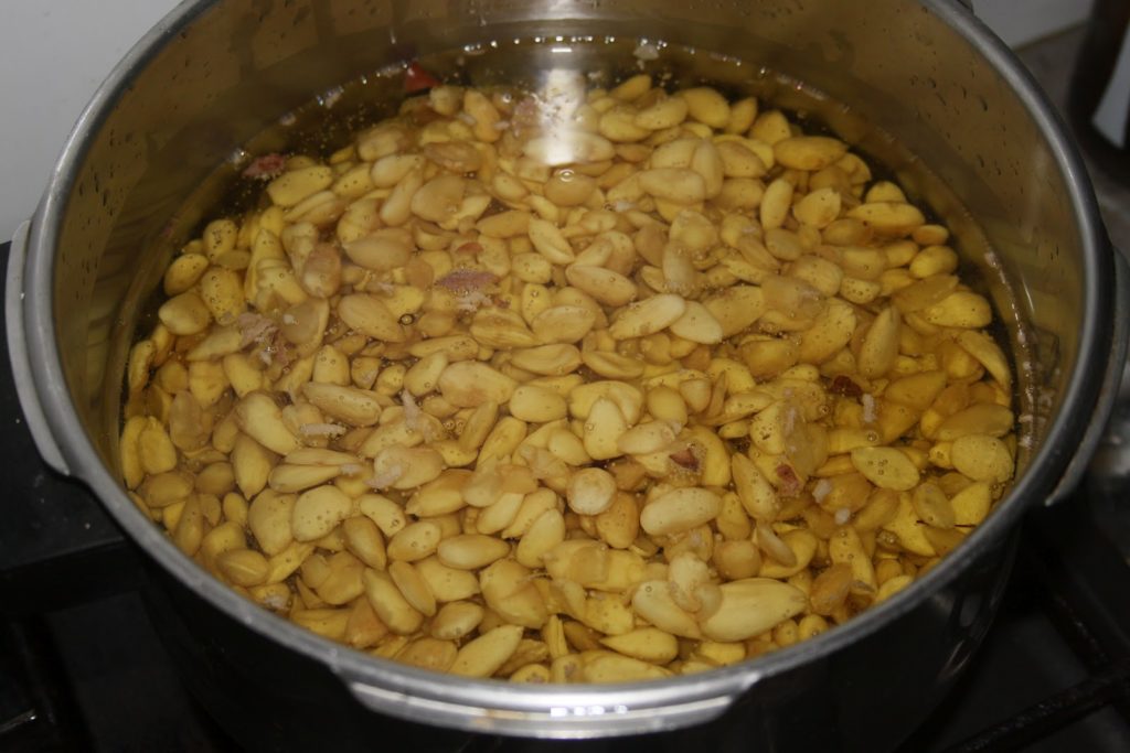 - L’huile va bien chauffer et les amandes vont commencer à frire.