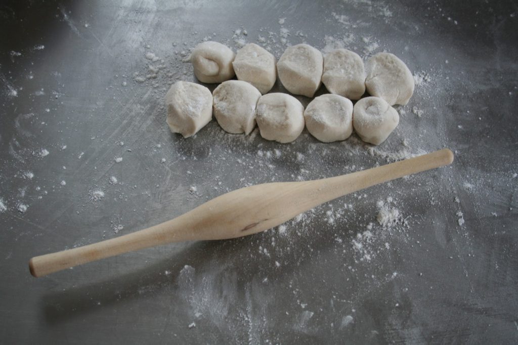 - Voici le rouleau à siu mai de Shanghai… Il a une très grande utilité!! J’ai maintenant toute une collection de rouleaux à dim sum et à pâtisserie. Rouler la pâte en un boudin de 2 ou 3 cm de diamètre et couper une vingtaine de tranches égales. (sur la photo je n’ai que la moitié de la pâte!).