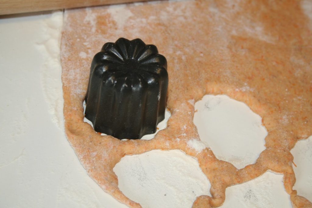 - Découper des formes. Les sopaipillas sont en général ronds et parfois cannelés. C’est pour cette raison que j’utilise un moule à canelés comme emporte-pièce.