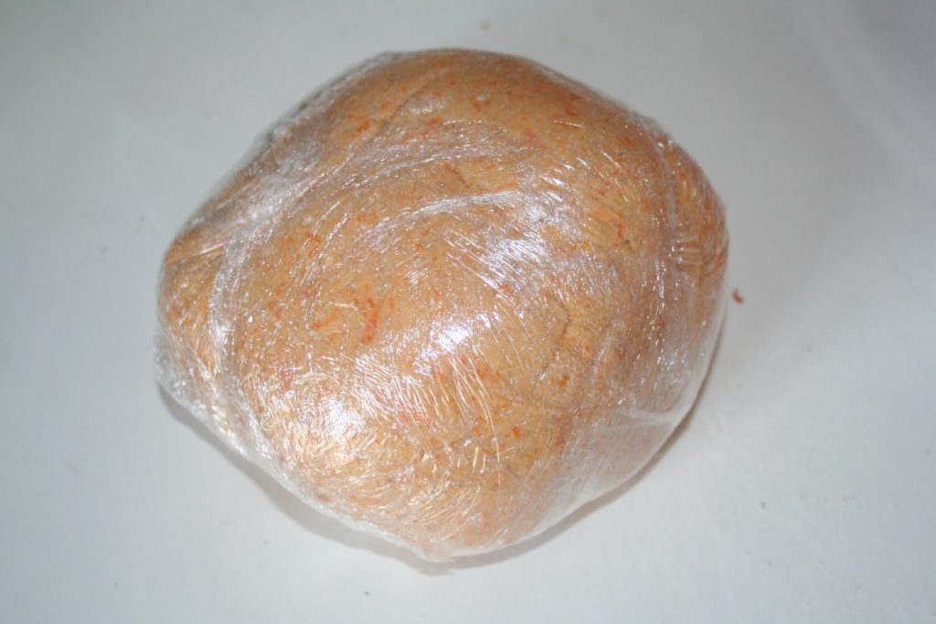 Laisser reposer la pâte au frais une petite heure dans un film plastique.