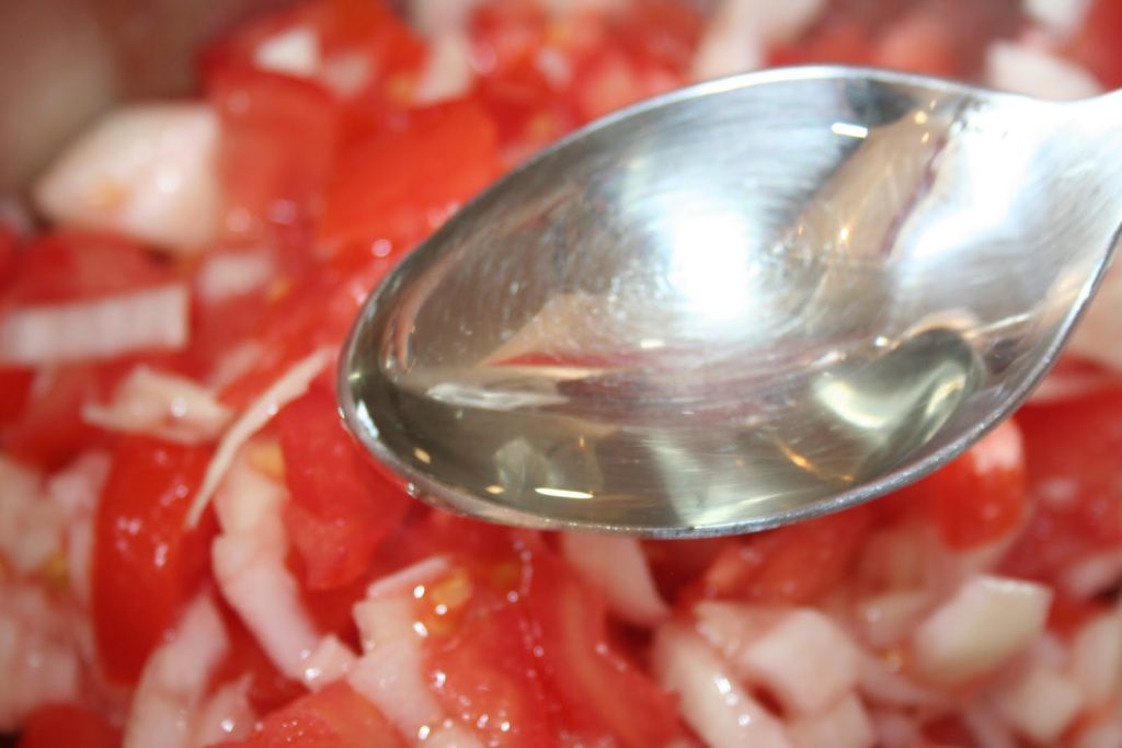 - Mettre le tout dans un récipient. Ajouter le vinaigre et l’huile.