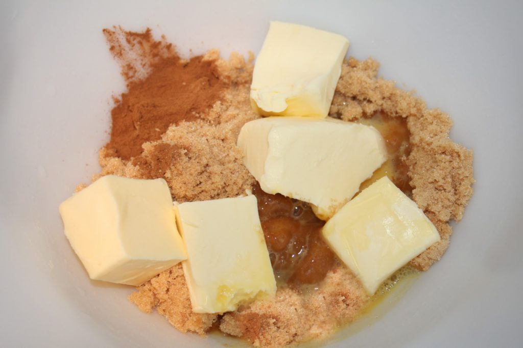 Mettre le beurre mou, la vergeoise brune, les épices et l’eau dans un large bol.