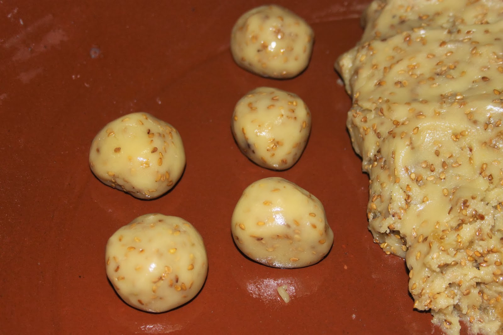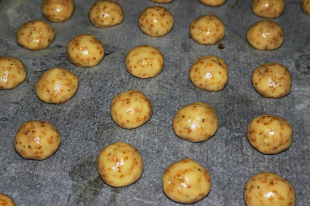 - Placez les boulettes de pâte sur une plaque (ou des plaques plus probablement !!) garnie de papier sulfurisé en les espaçant un peu.