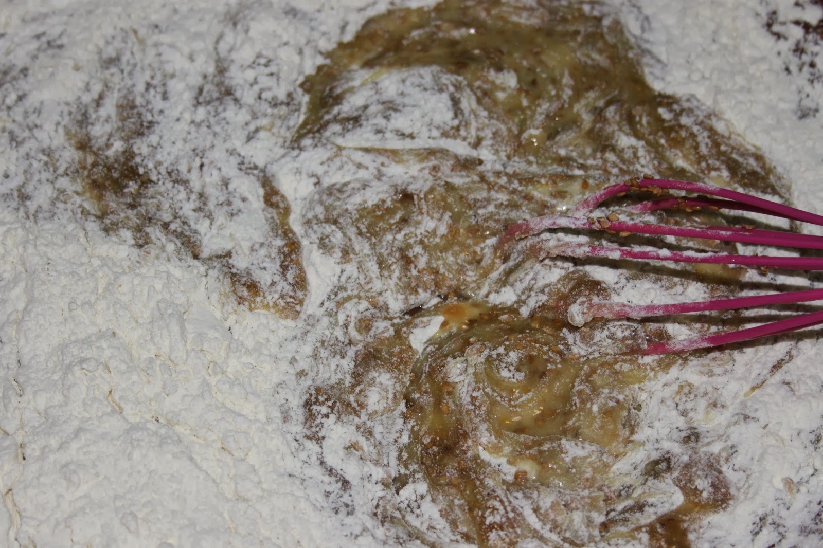 - Ajoutez une partie de la farine avec le sachet de levure.