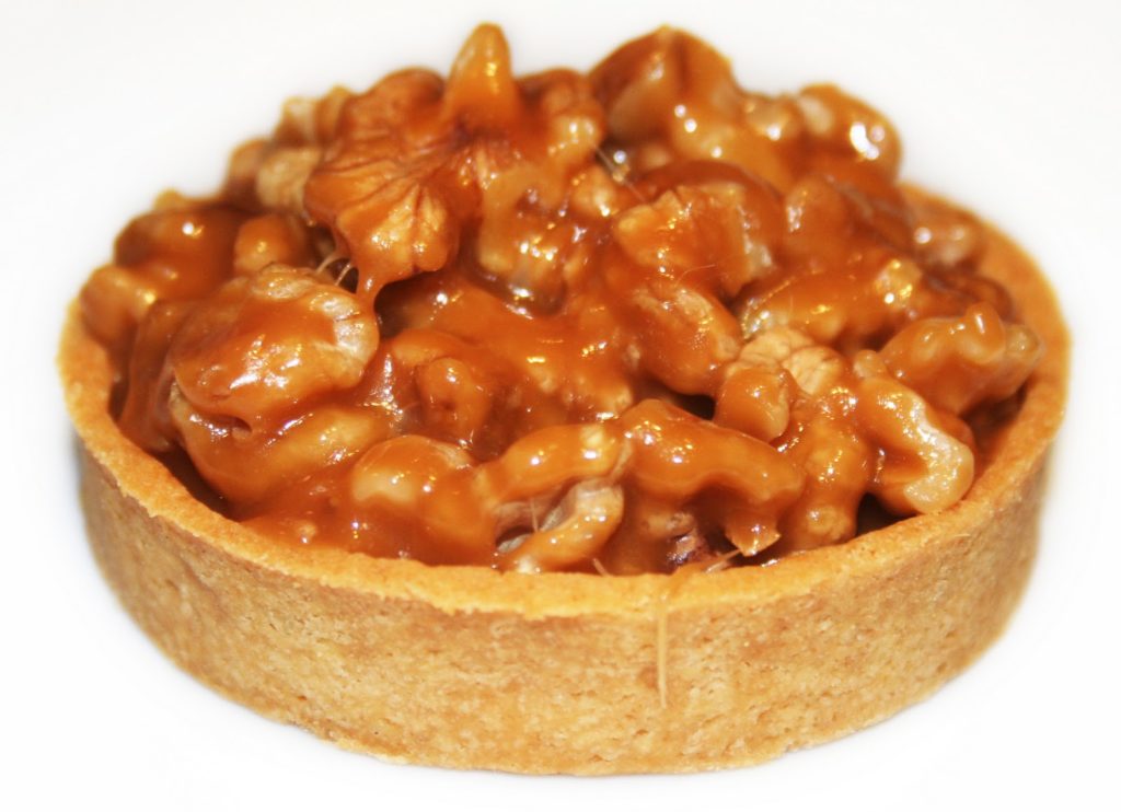 Une petite tartelette de saison, finement croustillante et garnie de noix au caramel. Une nouvelle folie calorique mais tellement délicieuse… J’ai souvent trouvé cette tartelette dans des pâtisseries sous cette appellation et également avec cette quantité de noix. On n’est bien sûr pas obligé d’en mettre autant!!
