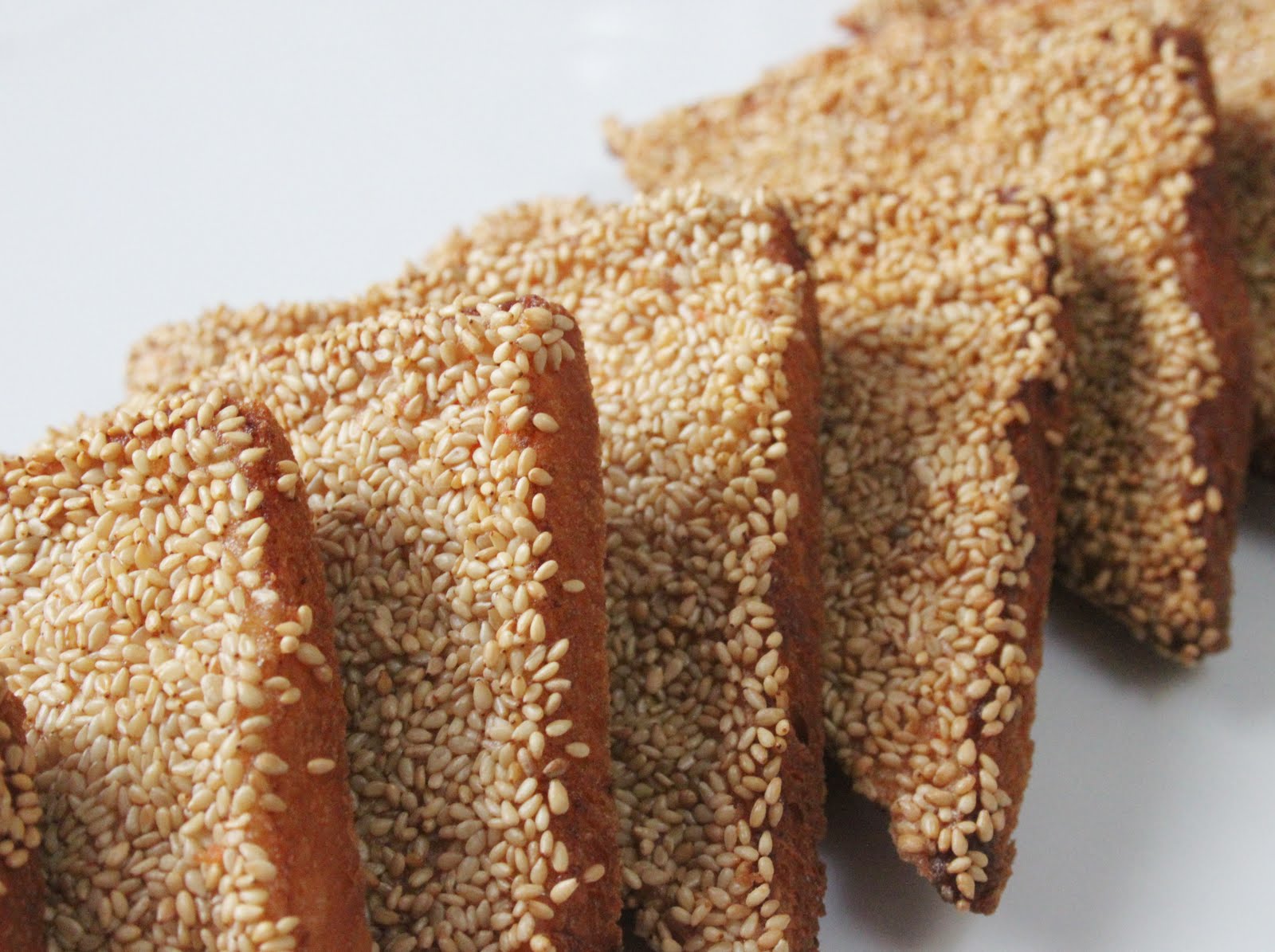 - On obtient alors des tranches parfaitement recouvertes de graines de sésame grillé.