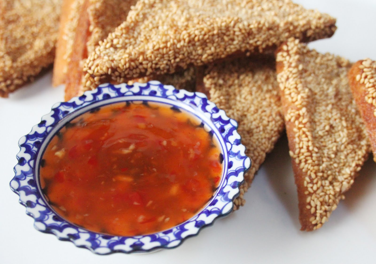 - Servir avec une sauce sucrée pimentée (on la trouve dans les épiceries chinoises sans aucune difficulté!!).