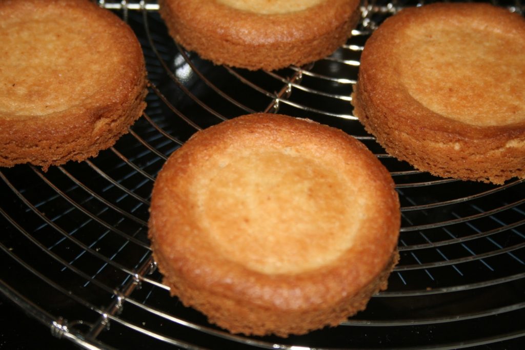 - Cuire 12 minutes puis démouler en s’aidant d’un objet rond… C’est très flou mais on peut utiliser plein de choses!! J’utilise aussi un tire bouche (ceux qui sont cylindriques et où il suffit de tourner sans arrêter…). De cette façon on va plaquer le gâteau et pouvoir tirer le cercle.Dans la biscuiterie, ils marquent le gâteau avant cuisson.