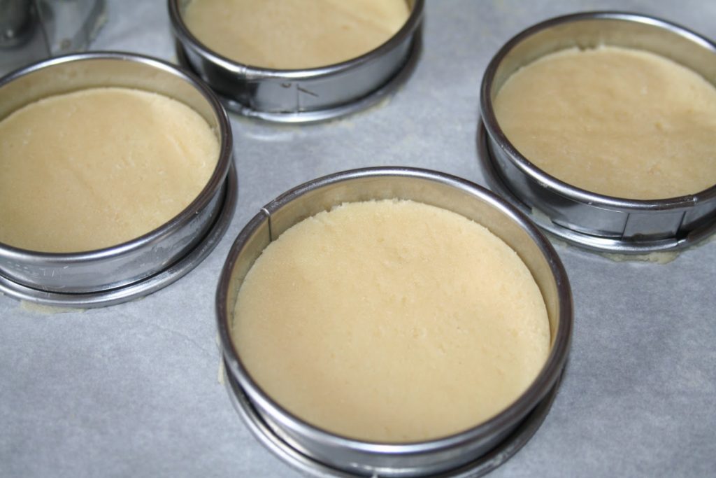 Coupez la pâte avec des cercles de 6 centimètres (traou mad utilise des cercles de 5,5cm, impossible à trouver mais de toute façon pour 0,5cm on ne verra pas la différence!) préalablement enduit d’une très fine couche de beurre ou de graisse de démoulage en bombe (j’utilise cette dernière option).