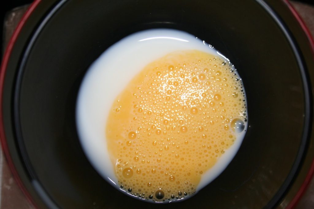 - Mélanger le jaune d’oeuf et le lait entier.
