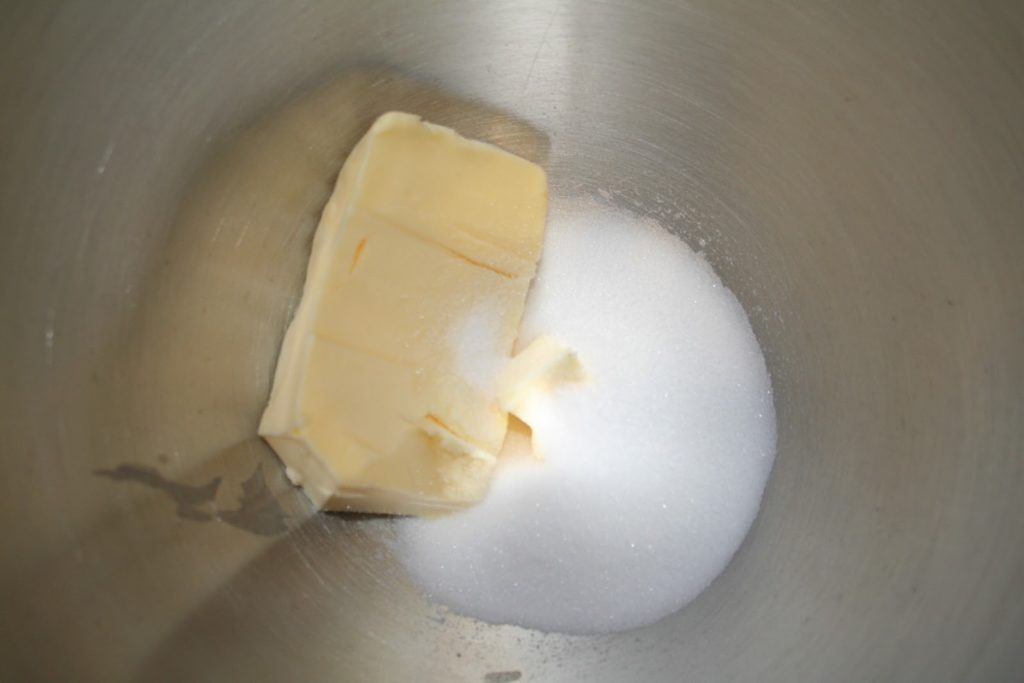- Commencer par mélanger le beurre demi-sel et le sucre.