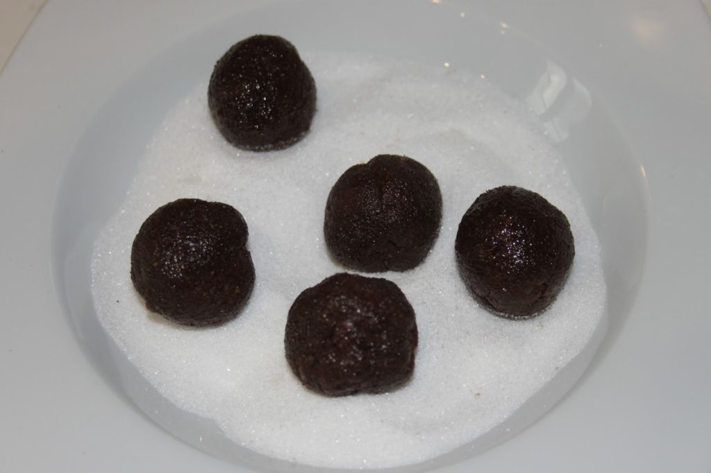- Faire des boulettes de 15g et les mettre dans du sucre en poudre ou cristallisé.