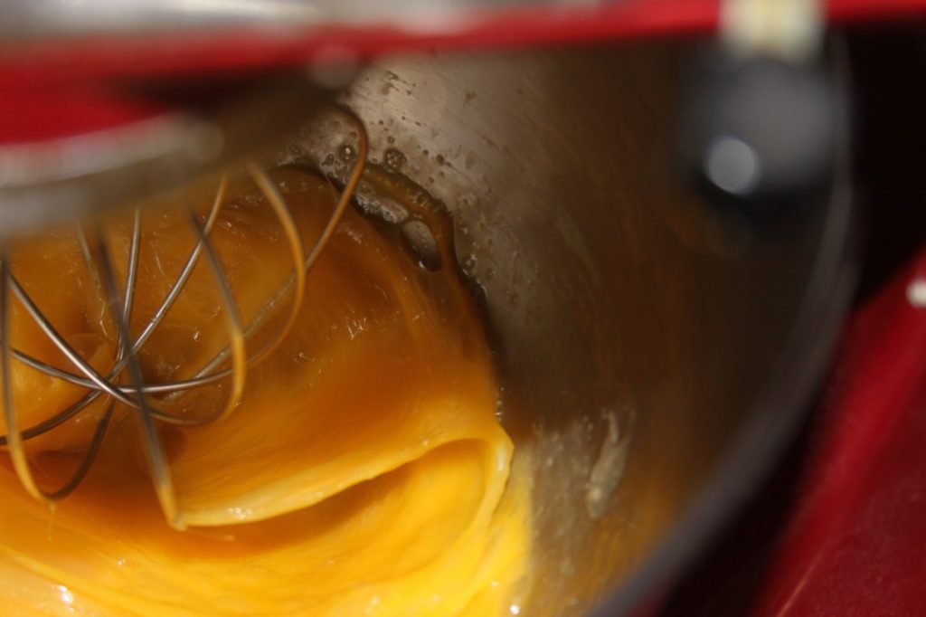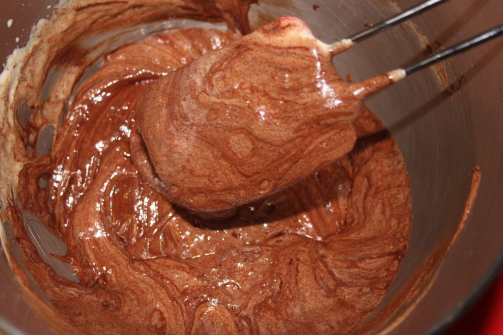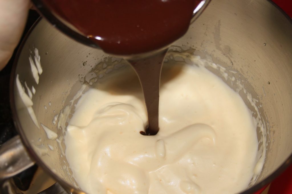 - Ajouter progressivement le chocolat et le beurre fondus dans les œufs mousseux.