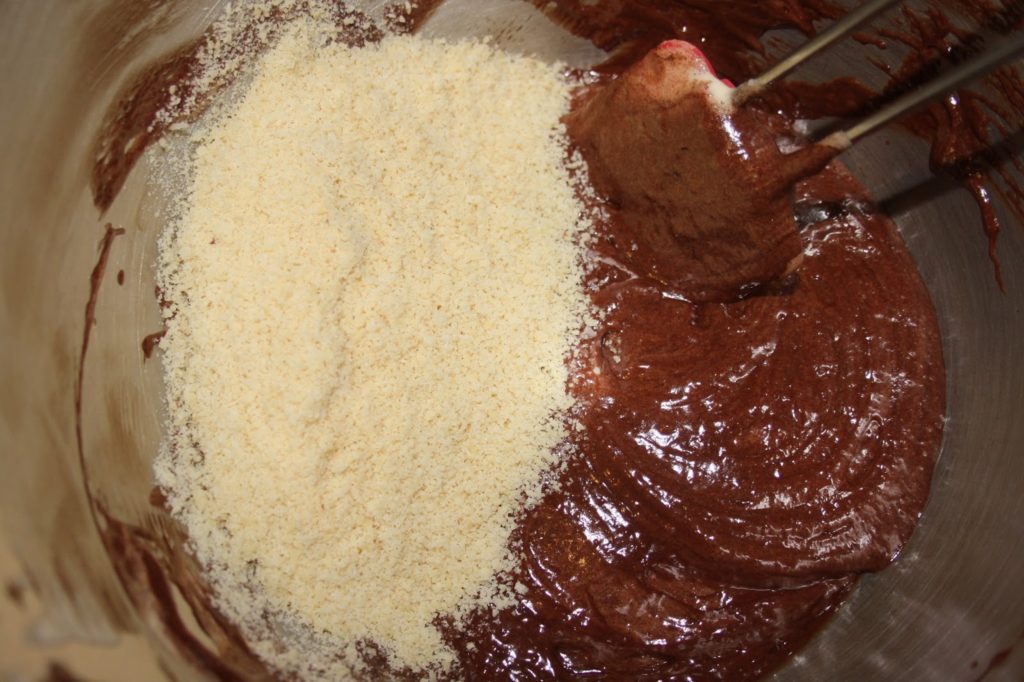 Ajouter la poudre d’amandes (avec le bicarbonate incorporé) de la même façon.