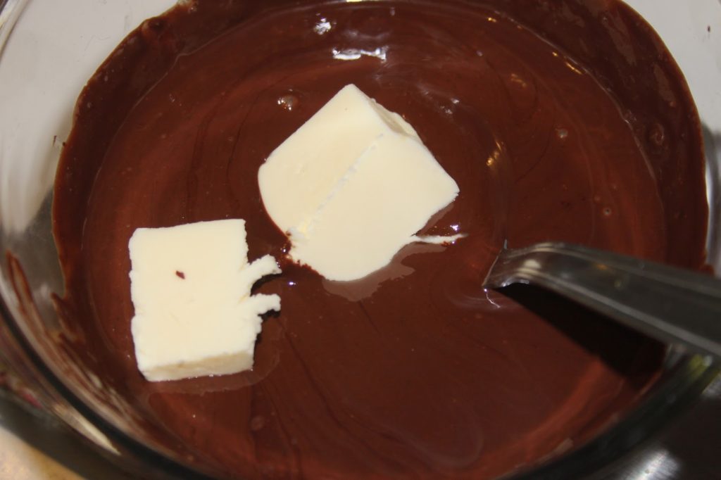- Fondre le chocolat puis ajouter le beurre pour le fondre également.