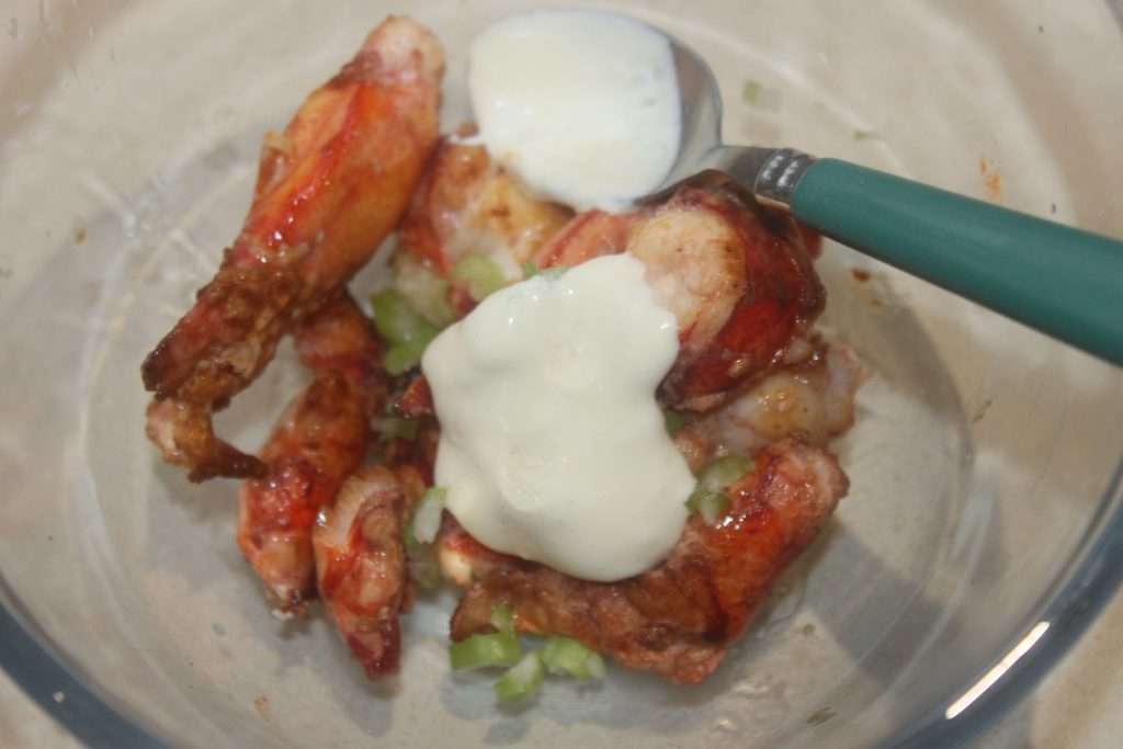 - Pareil pour la version luxe au homard ! Ajoutez ensuite deux-trois cuillerées à soupe de sauce, en en ajoutant au besoin. C’est à vous de voir à quel point vous voulez être généreux avec la sauce.