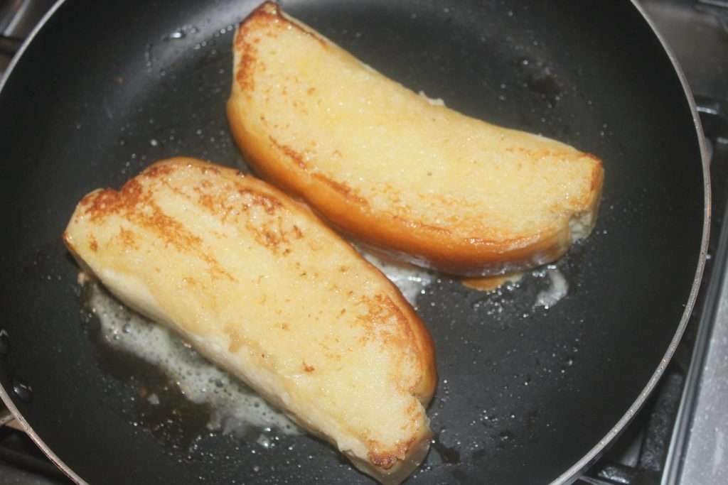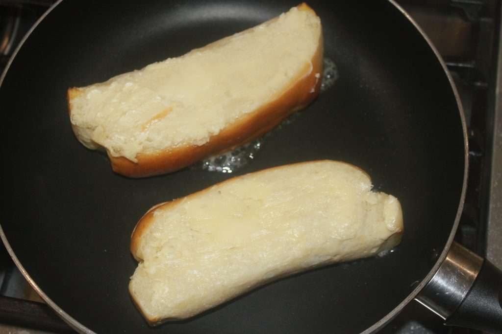 - Quand tout est prêt, tartinez de beurre demi-sel les deux faces des hot dogs puis faites-les réchauffer à la poêle sur feu modéré pour qu’ils soient bien dorés.