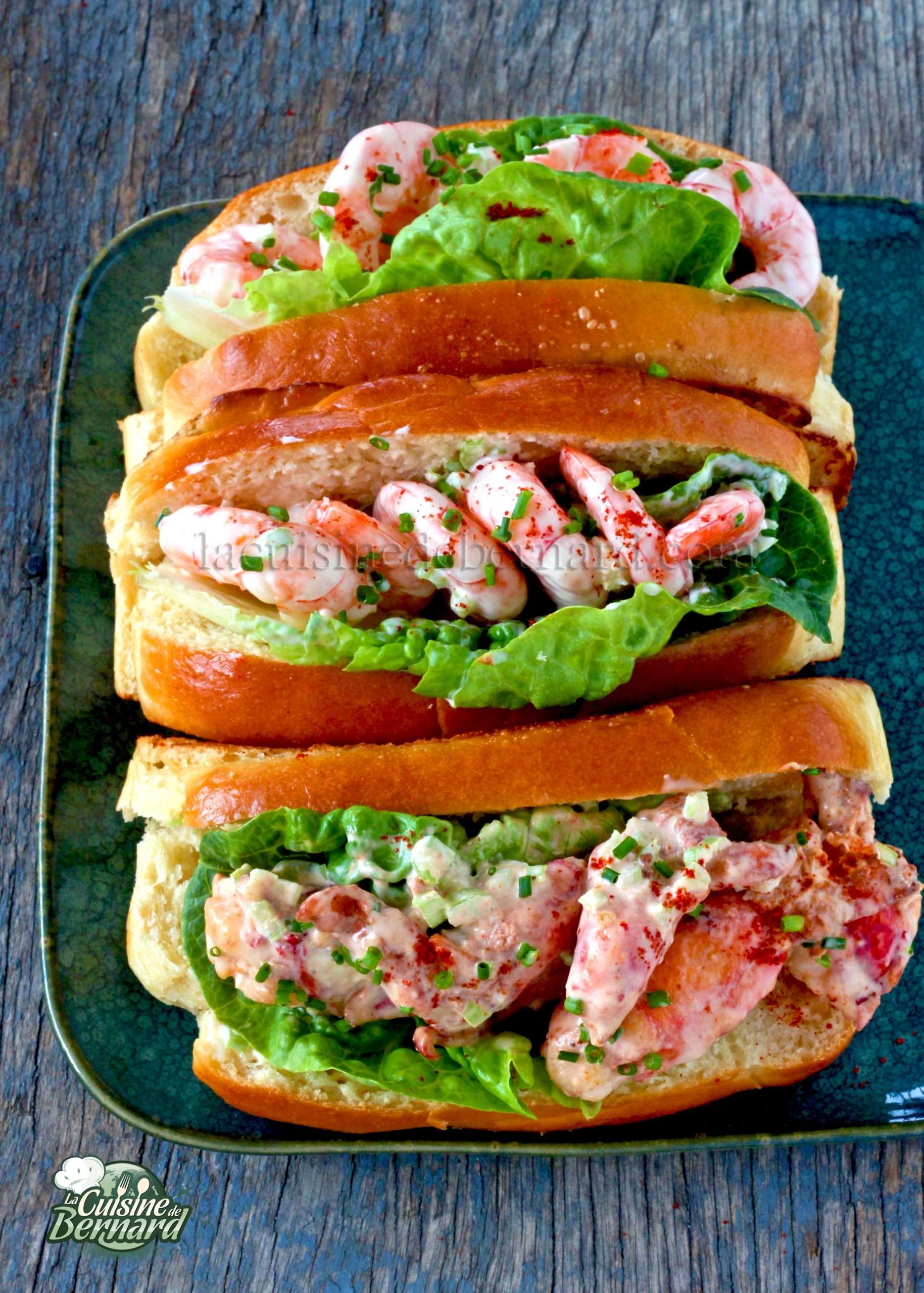 Je suis un vrai adepte de ces « hot dogs » aux crevettes ou au homard que l’on voit aux États-Unis et de plus en plus par chez nous. Alors je vous propose les deux versions, car celle au homard revient assez cher. Avec le bun très moelleux, c’est un délice total !! Un peu de citron et de céleri pour parfaire le tout, et le tour est joué !