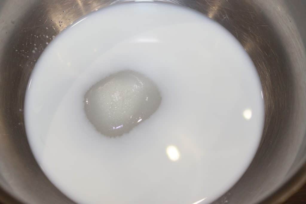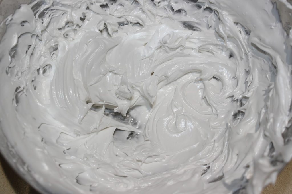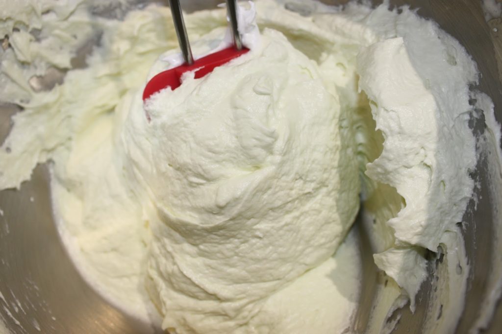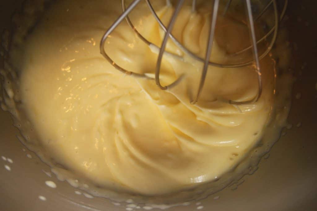 - Fouettez à grande vitesse. Au départ cela peut avoir une drôle de tête, mais pas d’inquiétude !! Cela revient vite dans l’ordre et vous devriez obtenir une crème homogène.