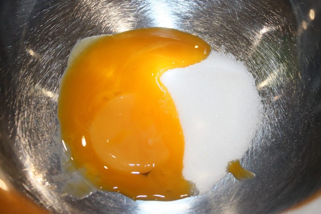 - Mélangez les 35g de jaune et le les 20g de sucre. Fouettez autant que possible.