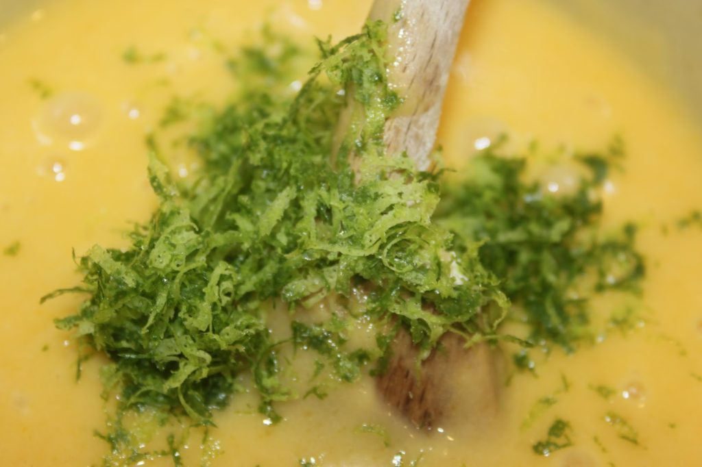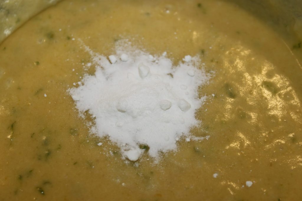 - Faites chauffer votre four à 185°C. Ajoutez la levure chimique à la pâte au dernier moment et mélangez très soigneusement.