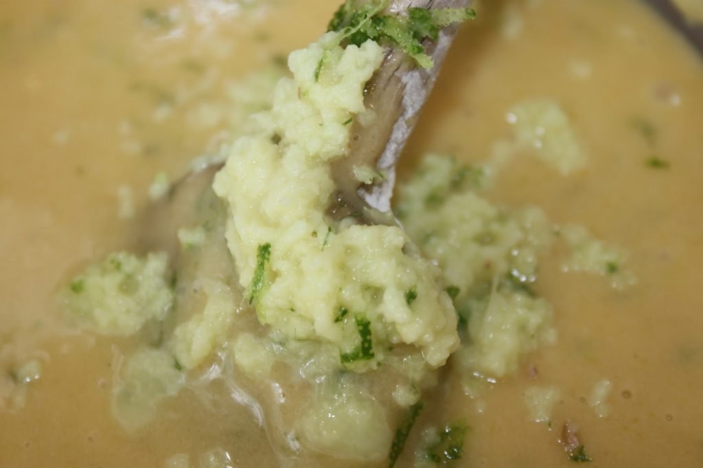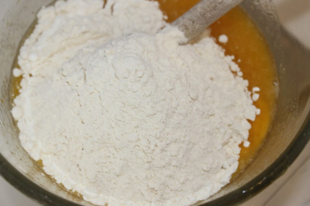 - Versez la farine en une fois et mélangez vivement jusqu’à obtenir une pâte lisse.