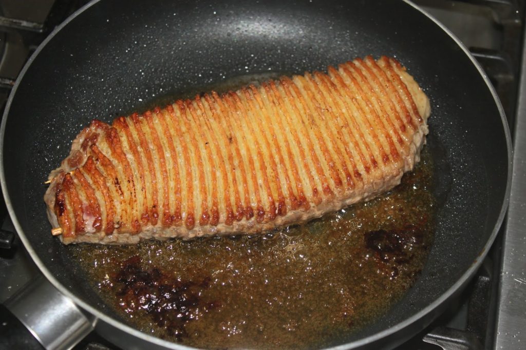 - Quand tout est prêt et cuit, faites cuire les magrets dans une poêle très chaudes. Le gras va d’autant mieux fondre avec des tranches pré-coupées. Le gras doit être bien coloré.