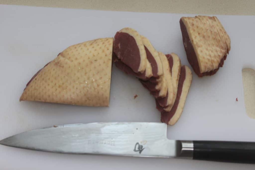 - Pour les magrets de canard, mettez-les au congélateur 3 heures pour faciliter l’opération suivante.