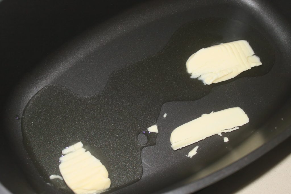 - Versez l’huile et le beurre dans un cocotte sur feu modéré.