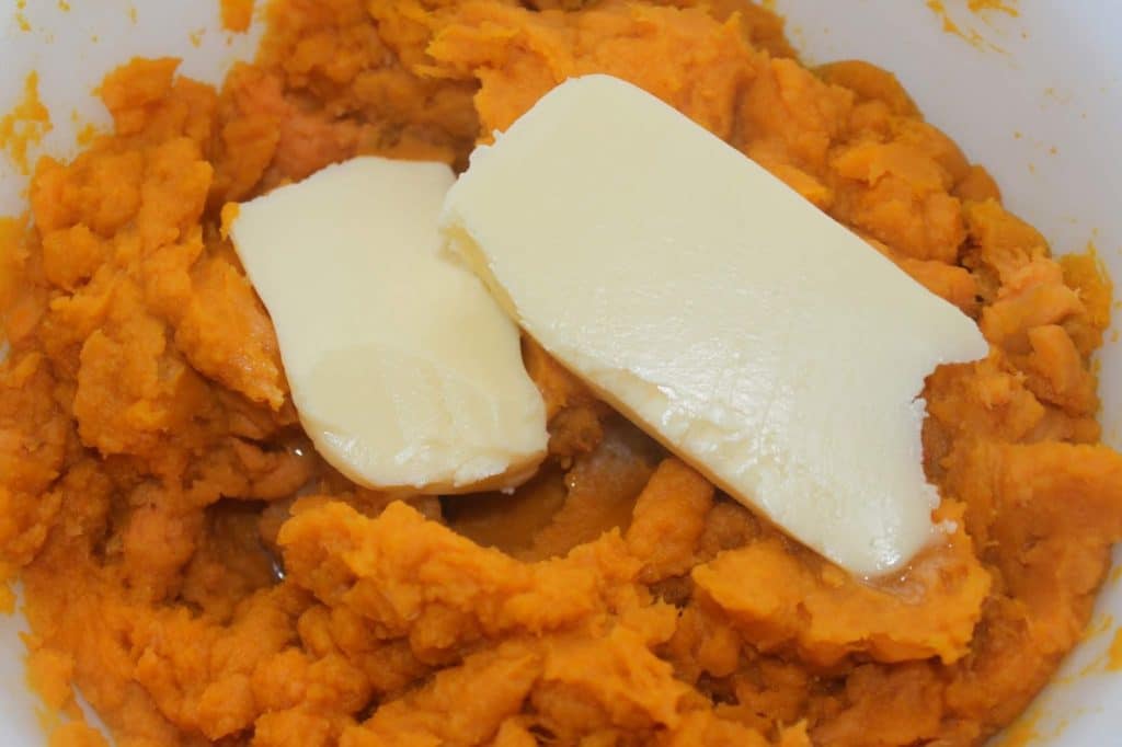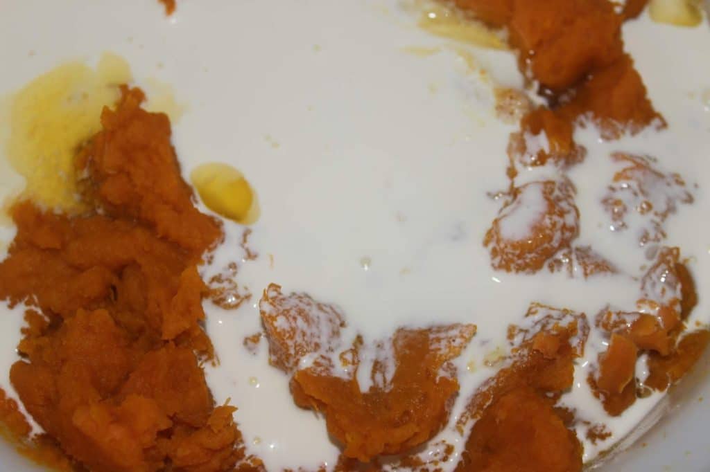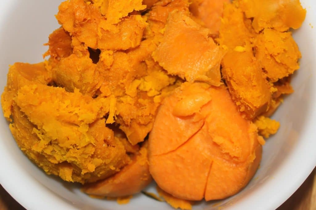 - Récupérez la chair de la courge et mettez le tout dans un récipient avec la patate douce.