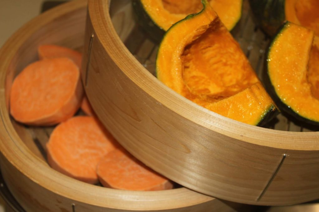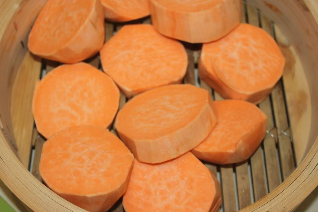 Faites cuire à la vapeur avec les patates douces épluchées et coupées en morceaux.