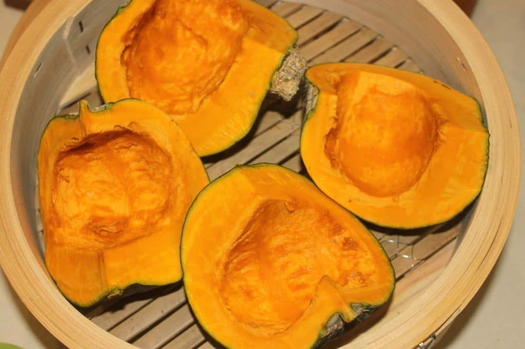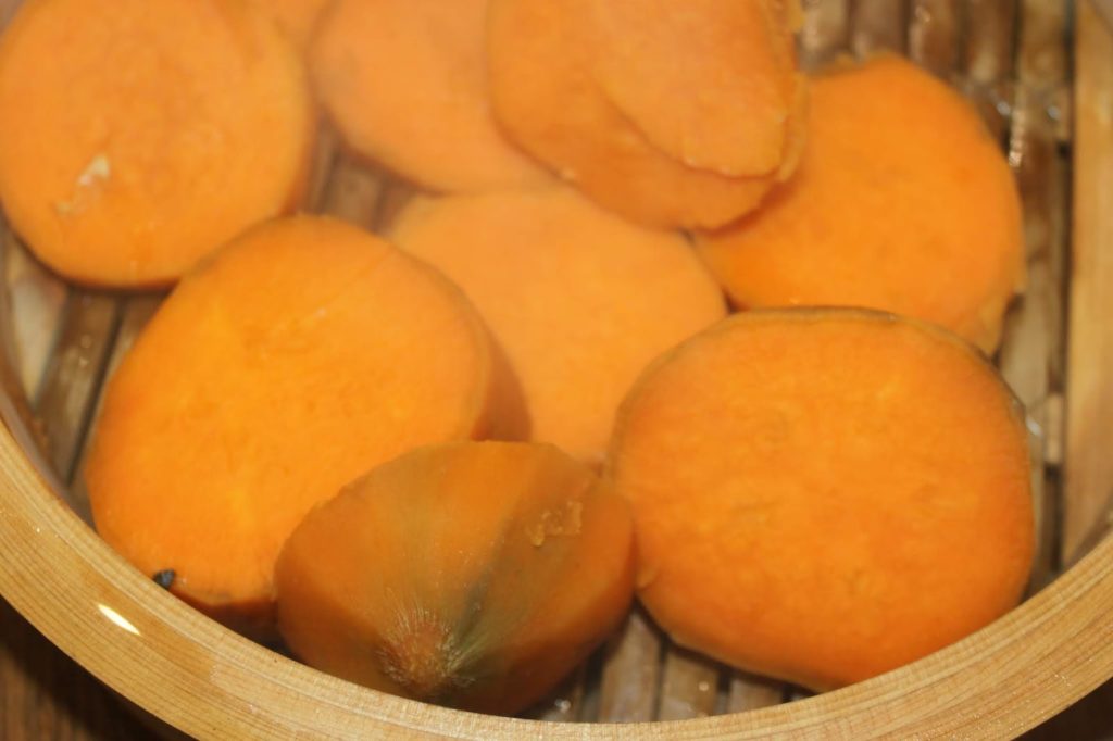 - Faites cuire à la vapeur avec les patates douces épluchées et coupées en morceaux.
