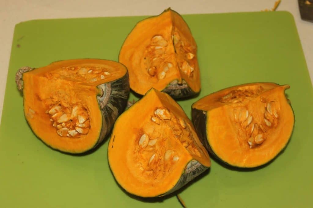 - Coupez et vides la kabocha que vous pourrez remplacer par du potiron ou de la courge butternut.