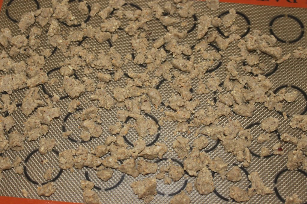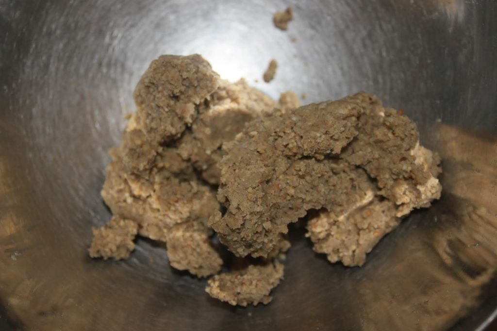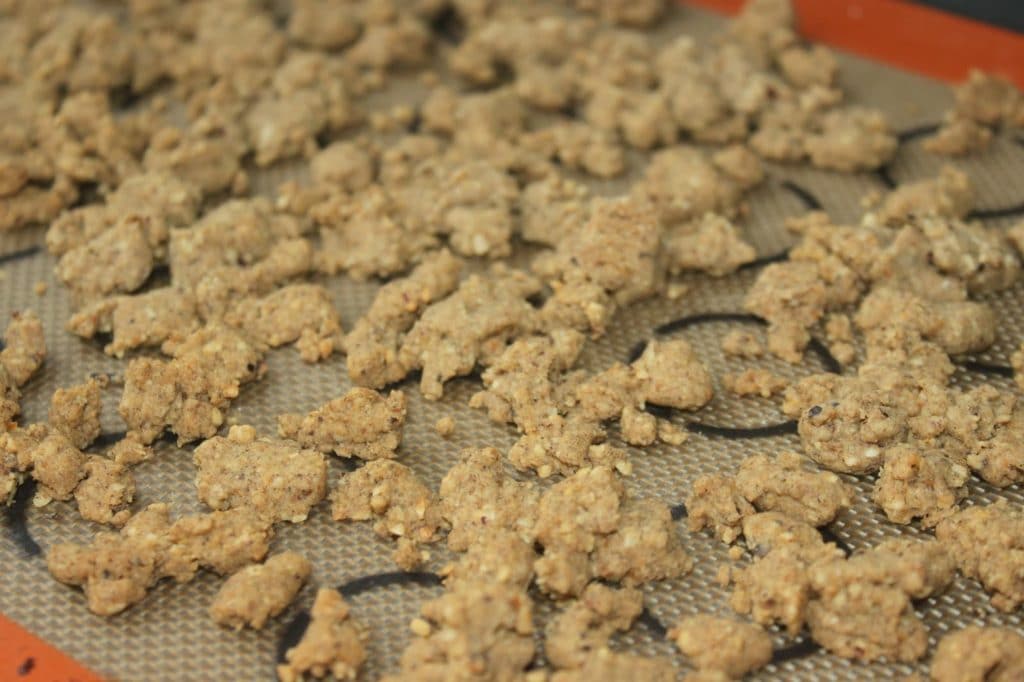 Préparez tout d’abord le crumble au sarrasin. Mélangez tous les ingrédients à la main dans un petit récipient.