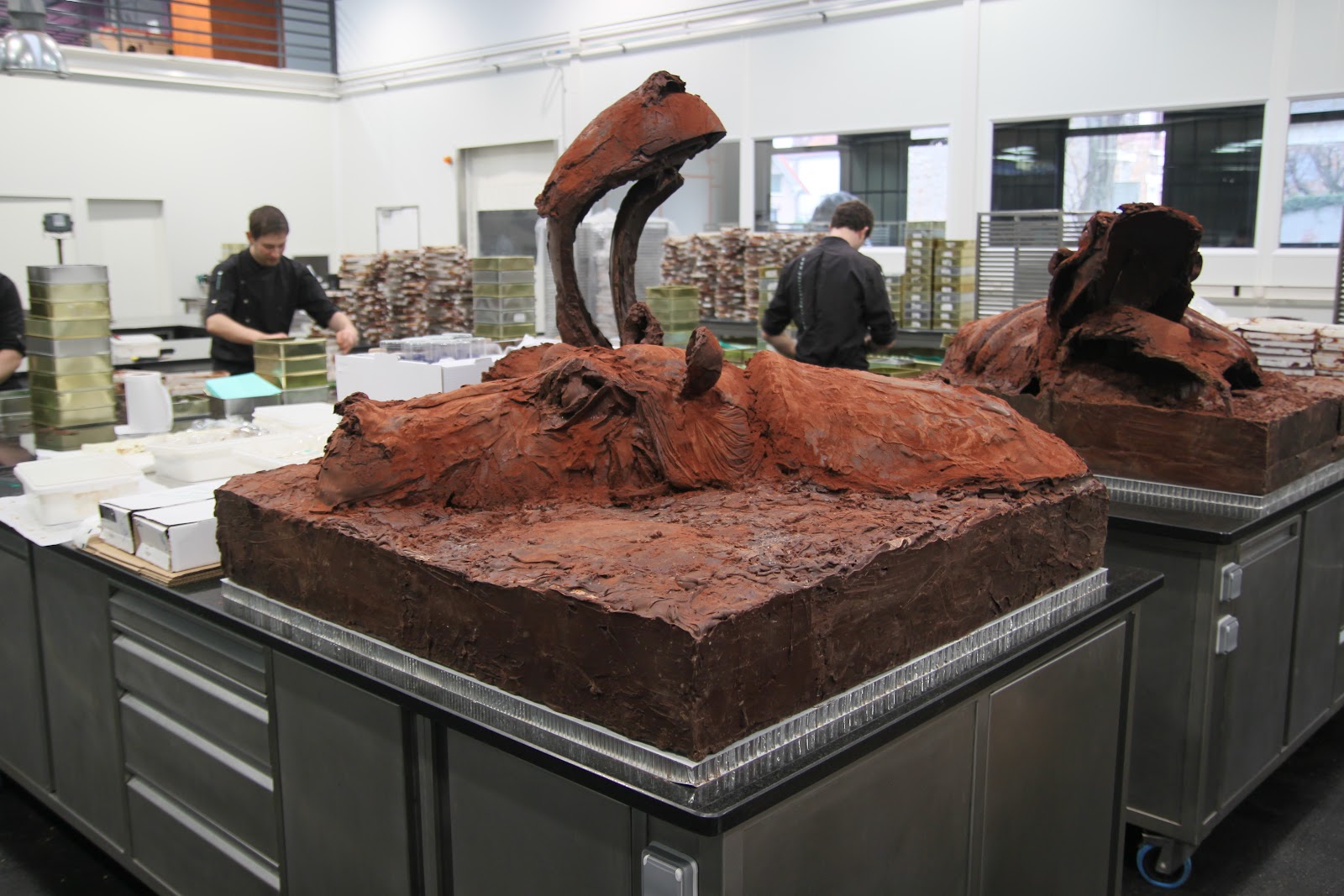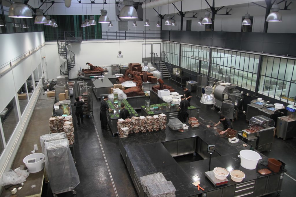 Essayez de bien regarder les détails dans la photo. Il y a des hippopotames, des bureaux, des ateliers réservés à la confection des couleurs des chocolats…