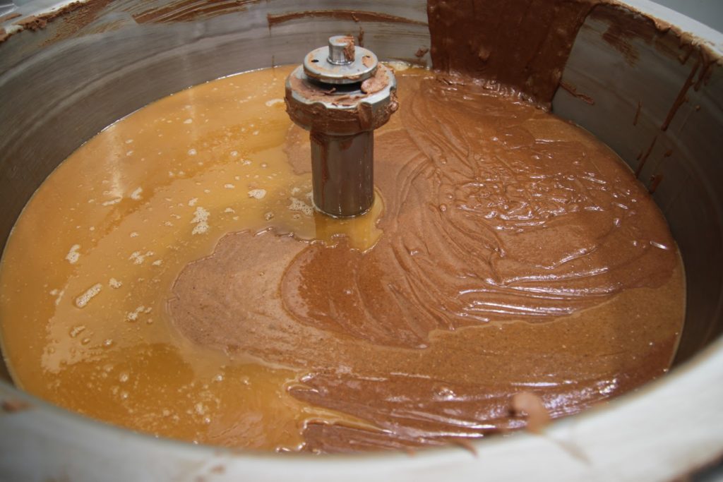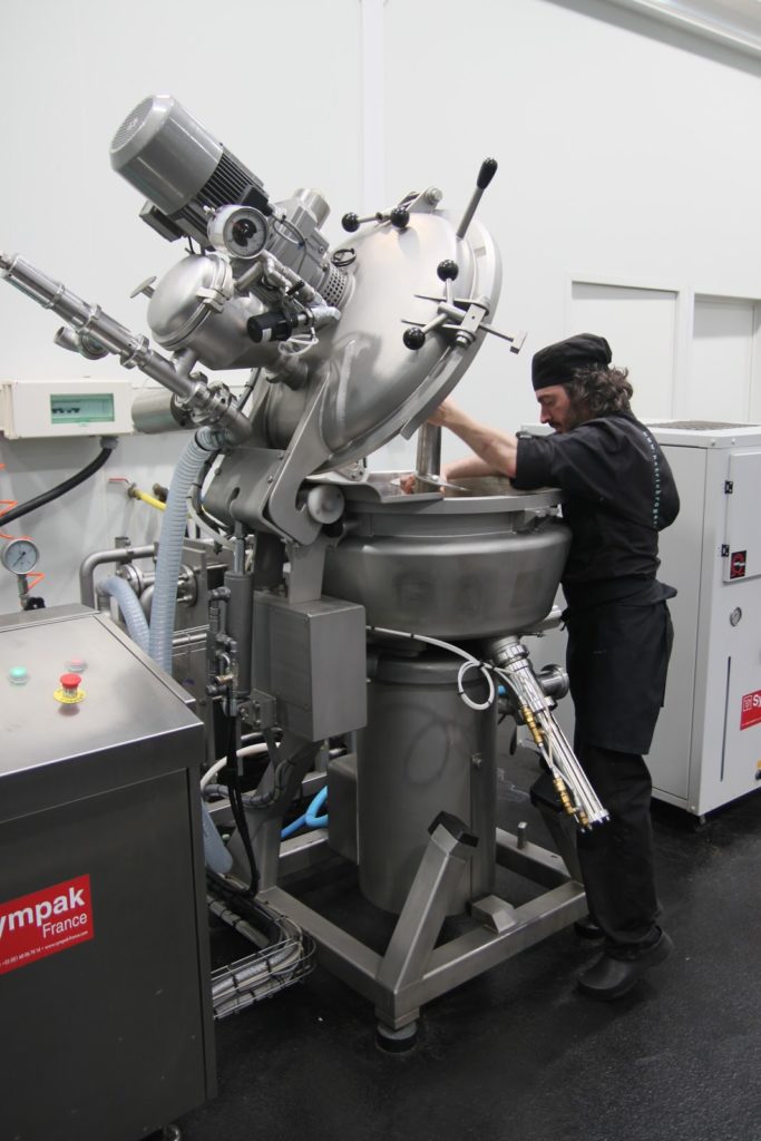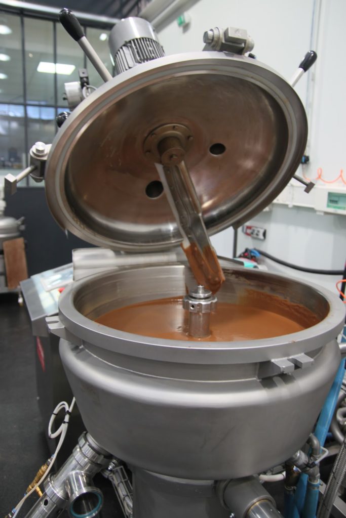 Cette énorme machine, correspond un peu à nos petits mixeurs. Sauf qu’ici, ce sont des kilos de praliné qui en sortent.