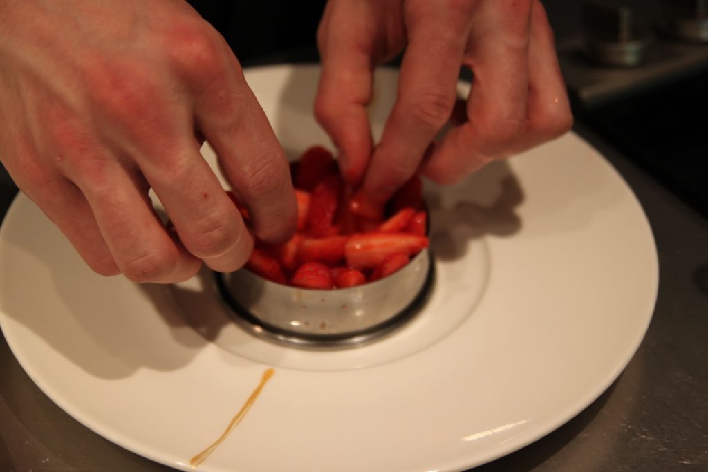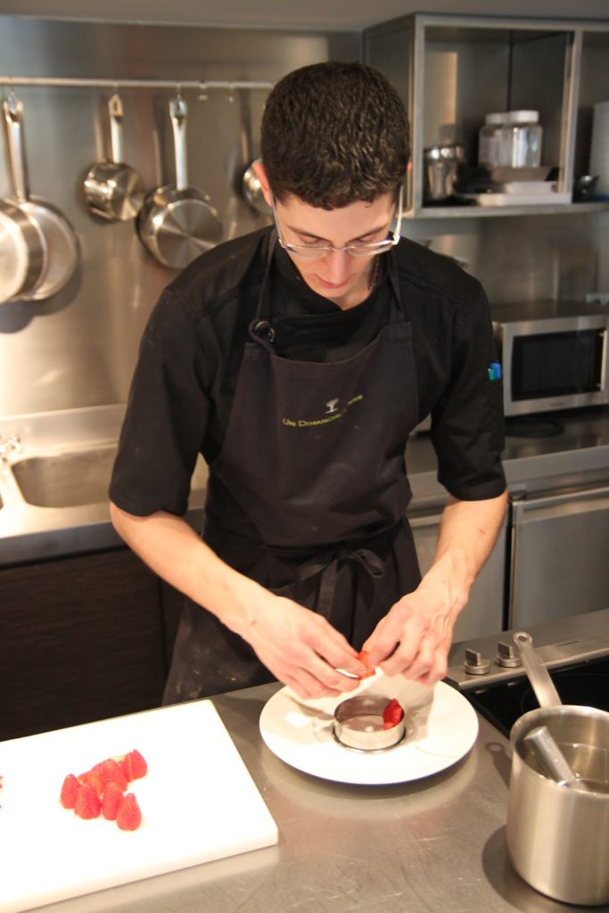 C’est l’heure du dessert et notre jeune chef pâtissier vient nous rejoindre pour ajouter sa petite touche.