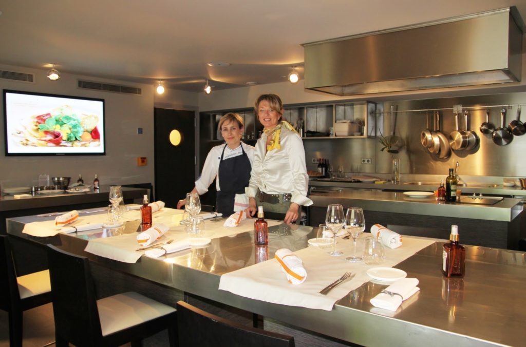 Notre organisatrice de Cointreau pose ici avec notre chef du jour dans la grande cuisine de l’étage.
