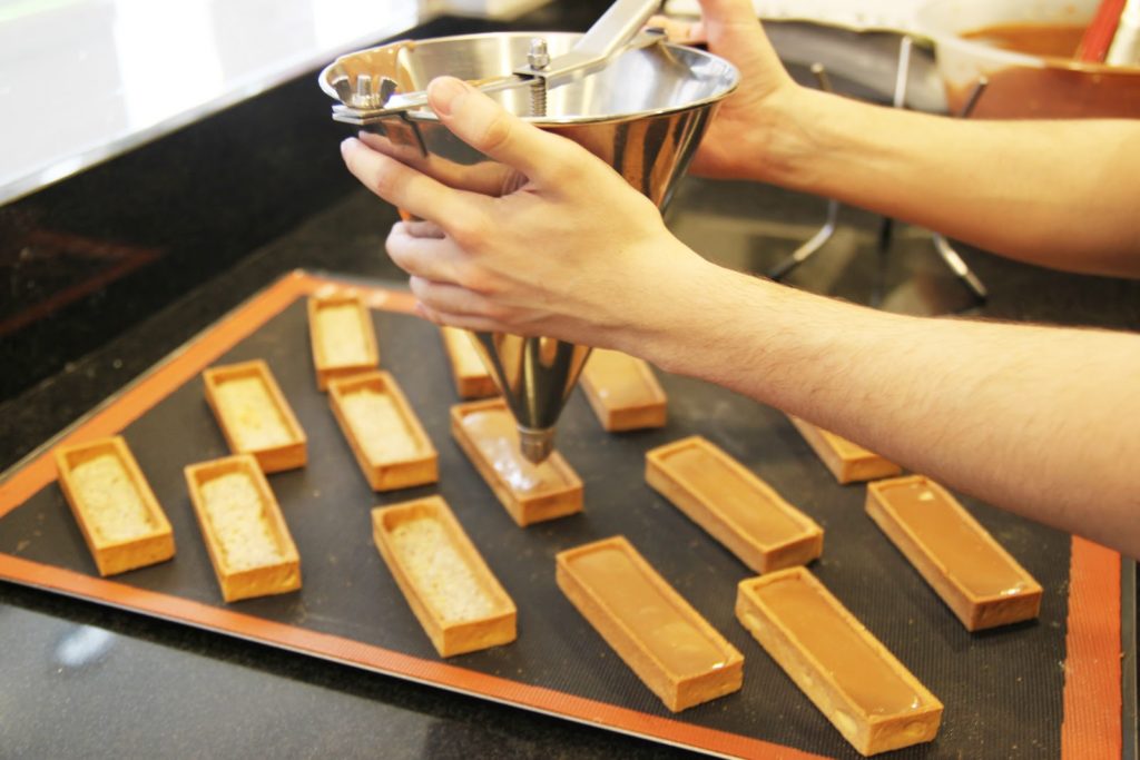 Bien sûr, je n’ai pu résister à demander d’aller y jeter un coup d’oeil. Surtout quand il y a des petites tartelettes au caramel en pleine préparation!!