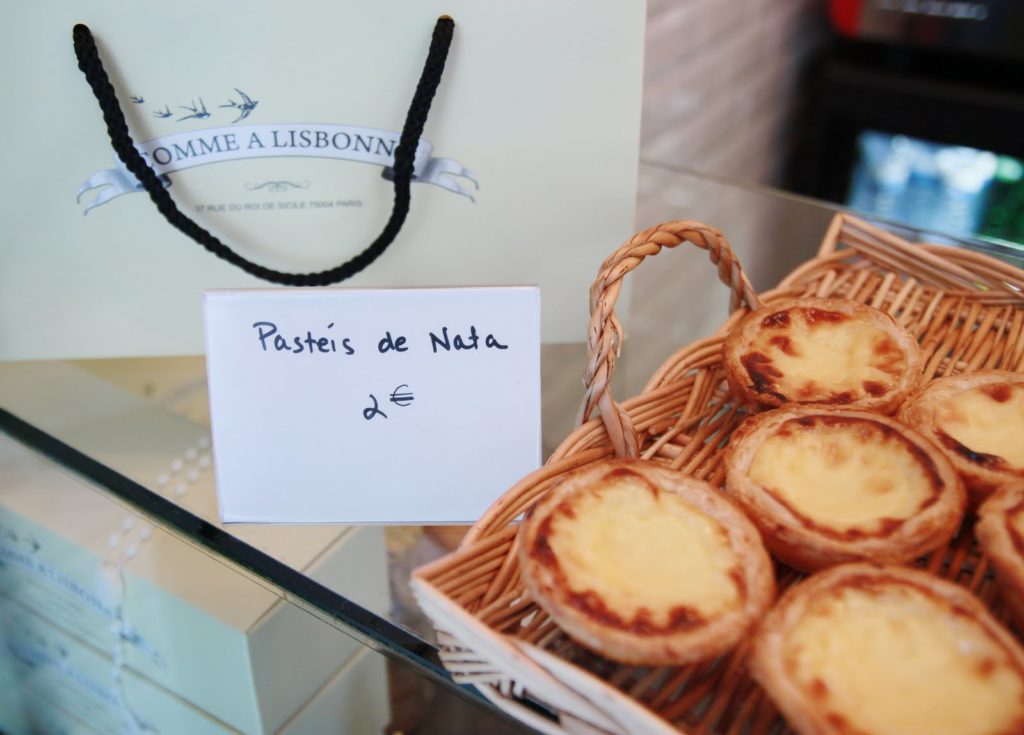 Voici un petit reportage sur une boutique qui mérite réellement le détour! « Comme à Lisbonne » se trouve au 37, rue du Roi de Sicile dans le 4ème arrondissement de Paris et a ouvert ses portes tout début juillet 2011. Et de quoi s’agit-il? D’une toute petite pâtisserie qui vous proposera d’excellents « pastéis de nata » (pastel au singulier) ces petits flans terriblement croustillants avec un intérieur onctueux et crémeux. Même à Lisbonne je n’en ai pas toujours mangé d’aussi bons! Ils sont préparés plusieurs fois par jour, ce qui garantit une fraicheur constante. Victor, le propriétaire tient sa recette de sa maman. Les pastéis sont presque toujours encore tièdes! Je vous propose cette adresse en prévision d’un reportage que je ferai directement à Lisbonne (comme ça vous pouvez déjà goûter les pastéis à Paris!). Je travaille d’ailleurs depuis plusieurs mois sur la recette et Victor a eu la gentillesse de me révéler quelques secrets. Venez vite planter vos dents dans un pastel pour émerveiller vos papilles!