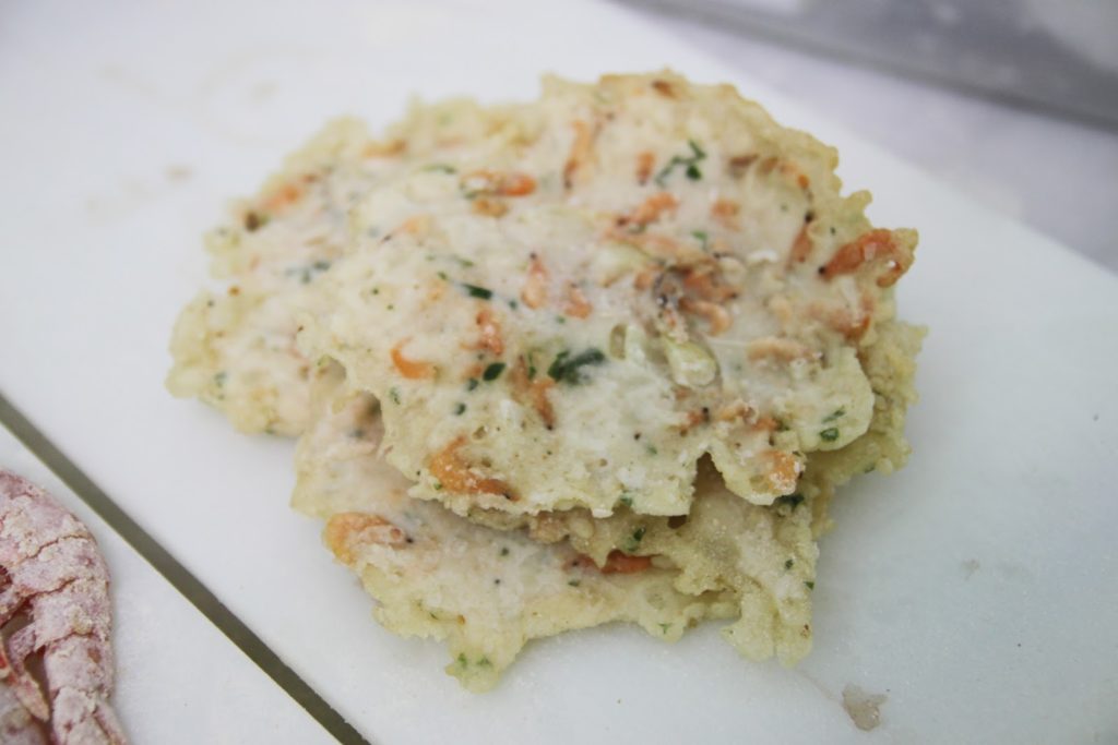 Voici la galette aux pois-chiches et crevettes une fois passée à la friture! Résultat: une galette toute croustillante et savoureuse!